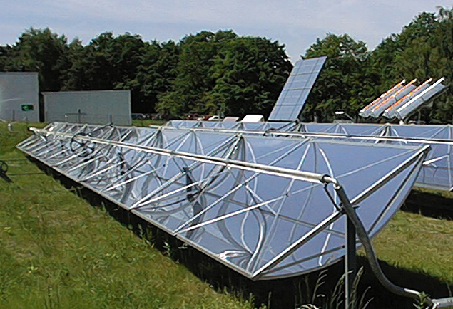 | parabolic solar trough concentrator in a solar power station (photos with kind permission of DLR/Cologne) |